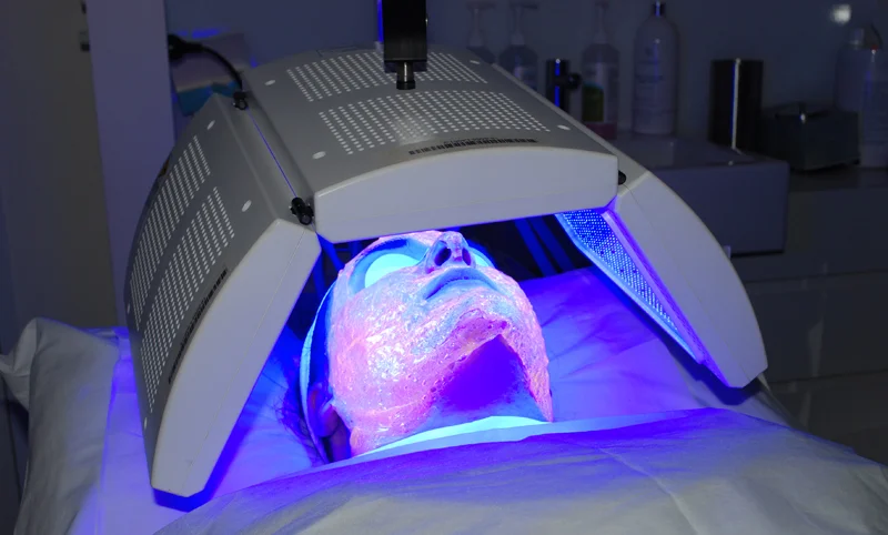 Tara explains that, "the patient is then placed under the Kleresca multi-wavelength LED light for 9 minutes. It's really interesting to watch the gel change colour as the light activates and transforms it. It starts out a bright yellow and then fades to pink."